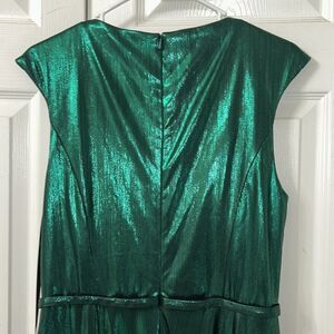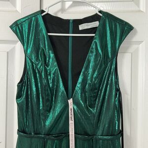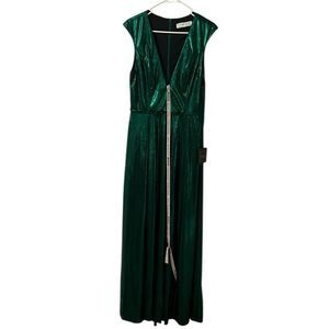 Mac Duggal Green Deep V-neckline Metallic Maxi Dress/Gown(Size 8)