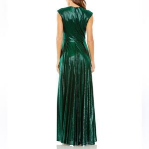 Mac Duggal Green Deep V-neckline Metallic Maxi