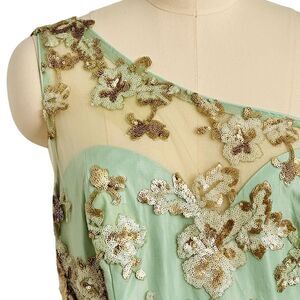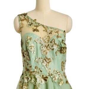 Mac Duggal Green and Gold Floral Embroidered One-Shoulder SAMPLE Gown | 12W