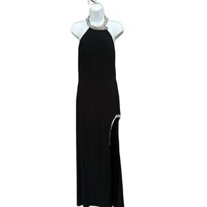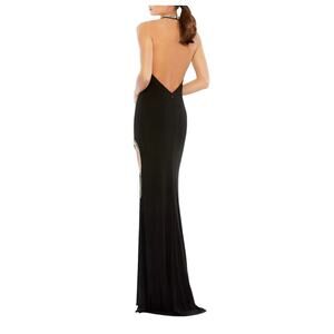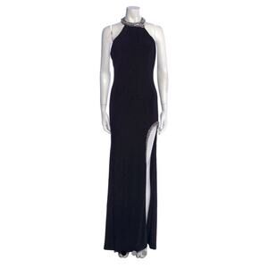 Ieena For Mac Duggal Crystal Halter Jersey Gown Side Slit Size 8 NWOT