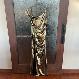 Mac Duggal Metallic Off The Shoulder Gown size 6 NWT