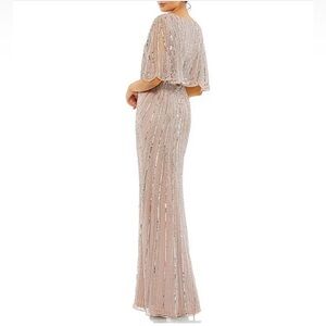 Mac Duggal Sequin Twist Waist V-Neck Flutter Short Sleeve Sheath Gown Sz 12 NWT