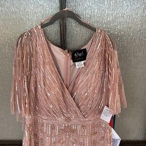 Mac Duggal Sequin Twist Waist V-Neck Flutter Short Sleeve Sheath Gown Sz 12 NWT
