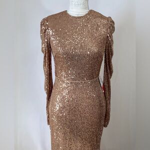 Mac Duggal Sequined Puff-Sleeve Sheath Gown size 2