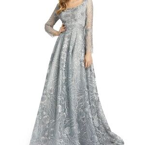Mac Duggel - Size 10 Long Sleeve Fully Lined Scoop Neck Floral Beaded Gown