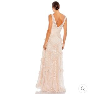 Mac Duggual Sequined Scallop Ruffle Tiered V Neck 9162 Gown - Blush Size 22 NWT