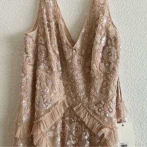 Condition: NWT - Due to the nature of the dress, there may be minor loose/missing threads, sequins, beads, etc. I have included 2 pictures of minor spots I noticed. Dress does come with replacement bead packet. Currently full price online.