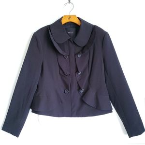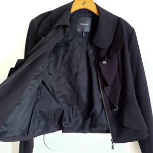 Beautiful!😍 Black jacket with hidden front zipper closure and ruffle details. Has shoulder pads. Lightly padded shoulders. Fully lined.
