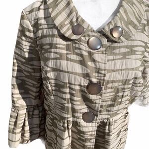 Mac & Jac Camouflage Lined Blazer/Jacket Peplum Bell Sleeves Large Buttons 12
