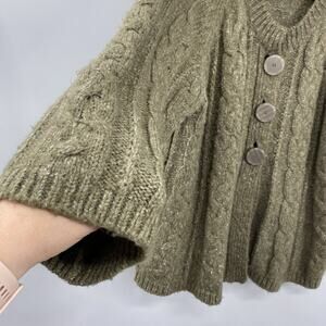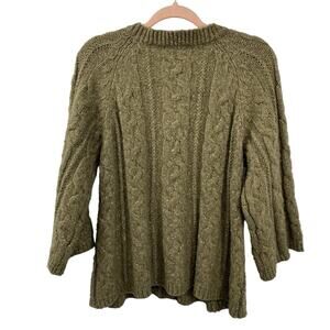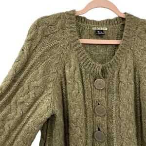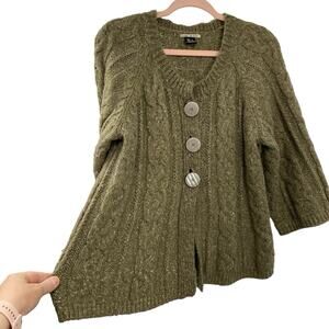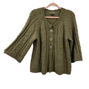Mac & Jac Chunky Cardigan Sweater Women size Large Green Wool Blend Wide Sleeves