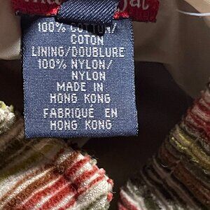 Vibrant, multicolor striped blazer with a button-up front, buttoned cuffs, and two front pockets. Size 4 with a cotton and nylon blend. Fully lined. Machine washable.
