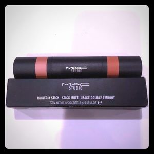 Mac cosmetics Quiktrik stick in the color Miss cupcake and tomato. This is a multi stick that can be used for many different looks and purposes. Can be used for lips, cheeks, eyes and highlight. Beautiful color shown in above photo.