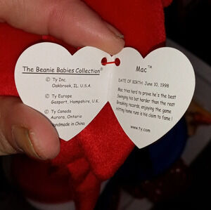 TY Beanie Baby 1998 Extremely Rare Mac the Cardinal Red w/Tag Errors Collectible.