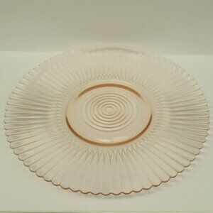This pretty pink Petalware depression glass 10 1/2 Inch salver or cookie plate was made by MacBeth-Evans from 1930 to 1940. This Plate is in very good condition with no chips, cracks or scratches. Be sure to search our other Petalware available.