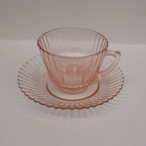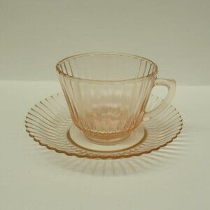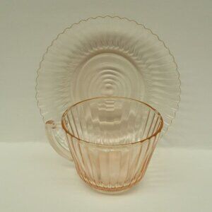 MacBeth Evans Depression Glass Pink PETALWARE Tea or Coffee Cup and Saucer
