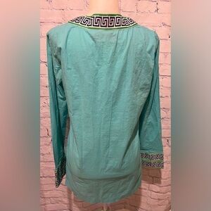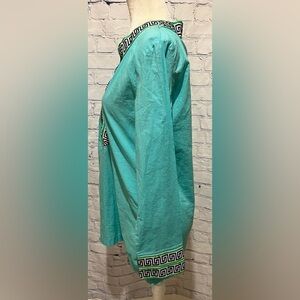 Beautiful MacBeth collection turquoise tunic top, size large, 100% cotton. Measures 20 inches pit to pit and 28 inches long. Smoke-free home.