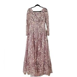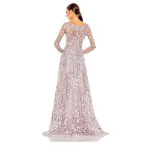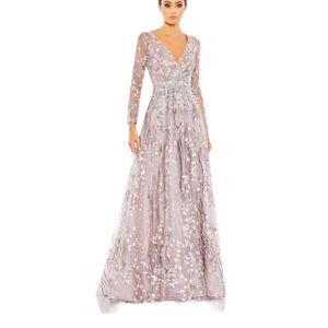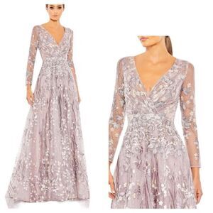 Mac Duggal 20402 Lilac Embellished Wrap Over Illusion Long Sleeve Gown| Size 6