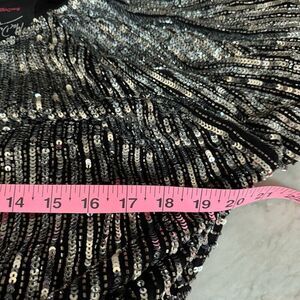 The tag is sewn upside down and some sequins might be loose or missing, it is not noticeable and dress comes with packet of extra sequins