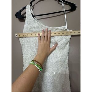 Mac Duggal 5263 One Shoulder Strap Drape Off White Sequin Evening Mini Dress S