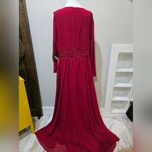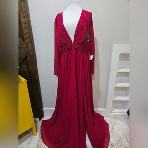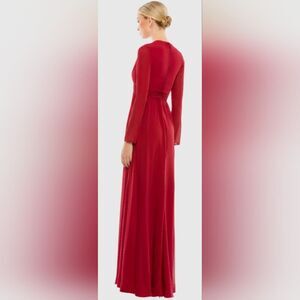 Mac Duggal 54680 V-Neck Front Twist Long Sleeve Gown NWT Size 16 Dark Red