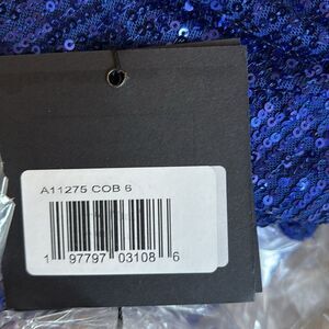 Mac Duggal A11275 Blue Sequined Draped Faux Wrap Asymmetrical Hem Gown