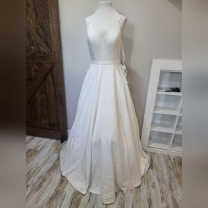 Mac Duggal CLASSIC A-LINE V-NECK BALLGOWN NWT size 8 white (48855)