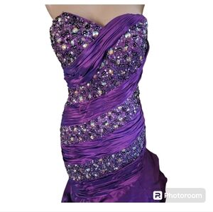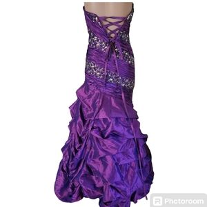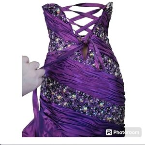 MacDuggal Couture Purple Sequined & Tulled Prom Dress w/ Crisscross Back Size 0