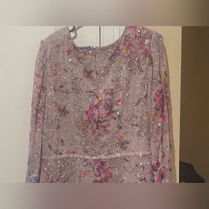 NEW $498 Mac Duggal [ 16 ] Floral Embellished Long Sleeve Midi Dress Mauve G1689