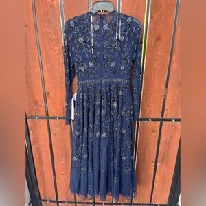 Mac Duggal Long sleeve embellished floral midi dress size 4 Navy style 10799