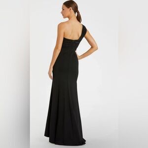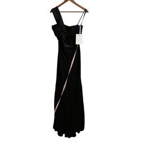 Mac Duggal NWT Black One-Shoulder Draped Trumpet FormalGown with Bow 49547 Sz 0