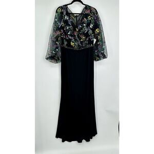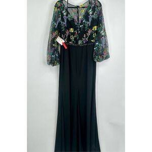 Mac Duggal NWT size 12 black EMBROIDERED ILLUSION GOWN style 79479