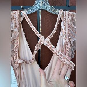 Mac Duggal Rose Gold/Apricot Sequined A line Gown size 6 NWT