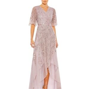 Mac Duggal Sequin Butterfly Sleeve High Low Gown 93681 size 4 VINTAGE LILAC