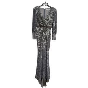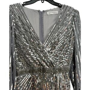 Mac Duggal Silver Sequined Wrap Over Bishop Sleeve Gown - Size 2 - New