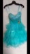 MacDuggal Strapless Sweetheart Neckline Aqua Teal Blue Gem Tulle Mini Dress