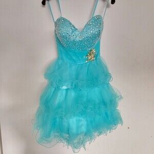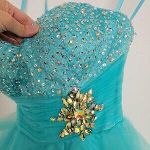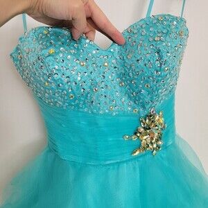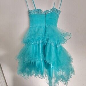 MacDuggal Strapless Sweetheart Neckline Aqua Teal Blue Gem Tulle Mini Dress Sz 2