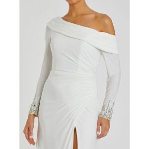 Mac Duggal White Beaded Cuff Drop Shoulder Faux Wrap Gown - Size 0 - NWT