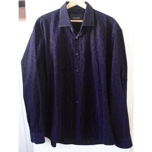 MacEoo Shirt Mens 2XL Black Royal Purple Blue Italian Jacquard Fibonacci A-2030 Dress Shirt