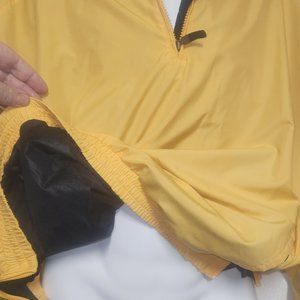 Elastic waistband and elastic cuffs. Riveted breathe holes at pits and waist.