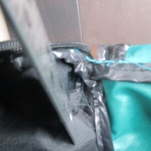 *Small tear towards the top of the fabric wall separating the main compartment from the end pocket (see photos)