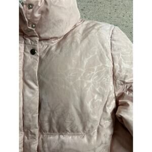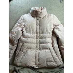 Stay cozy and stylish this winter with this beautiful MacIntosh pink down coat! Featuring a lovely tone-on-tone print, this puffer jacket is perfect for adding a touch of softgirl aesthetic to your wardrobe. This coat is in excellent condition and ready to keep you warm all season long.