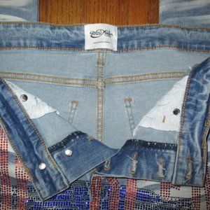 Embellished with sparkle beads, ripped knees