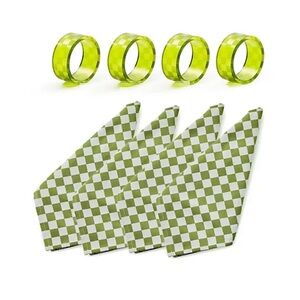 MacKenzie Childs Set of 4 Napkins and Napkin Rings Green Check