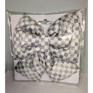 MacKenzie Childs Sterling Check Bow - Size Medium is covered in Sterling Check fabric, the Gray Silver & White Medium Bow is padded to give it dimension, making it perfect for decking wreaths, staircases, for weddings and more. Measures 7 x 11 inches. Has small twist tie on back to attach to garlands, etc - might need to add more depending on your project. This item has been retired and is hard to find. Other Sizes and more Sterling Check Items available.
