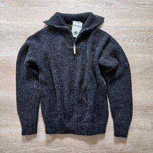 MacKenzie Men’s Hunter Wool Sweater – 100% Wool Quarter Zip Charcoal Medium NWT