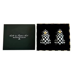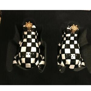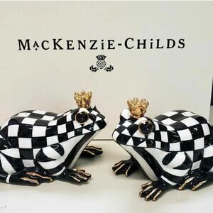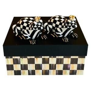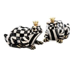 MacKenzie-Childs Black and White Checkered Frog Figurines with Gold Accents