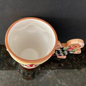 Adorable gingerbread man forms the handle of this mug that has colorful peppermint candies all around the mug itself!