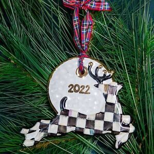 MacKenzie-Childs Courtly Check Stag Ornament 2022 Christmas NEW
