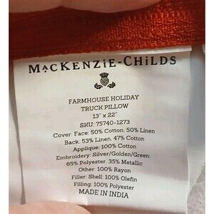MacKenzie Childs Christmas Holiday Truck Decorative Pillow 13" x 23". In Great Pre-owned Condition with some minimal signs of normal wear. See photos for details.