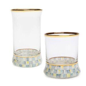 MacKenzie-Childs Sterling Check Highball Glass NEW without Box Gray Blue Check
